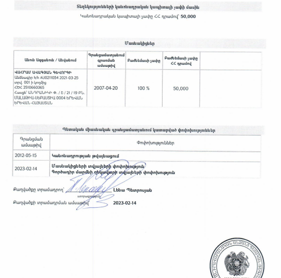 Ընկերության հիմնադիր տնօրենն է՝ Վահրամ Ավագյանը: