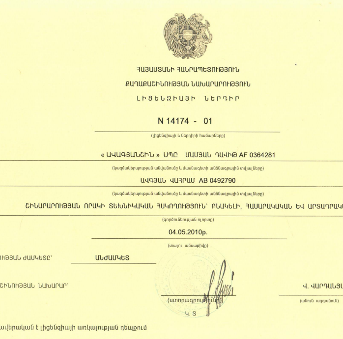 Բոլոր աշխատանքների բարձրորակ կատարում և արդյունքի երաշխիք