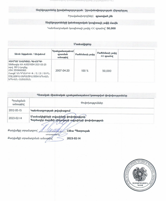 Ընկերության հիմնադիր տնօրենն է՝ Վահրամ Ավագյանը: